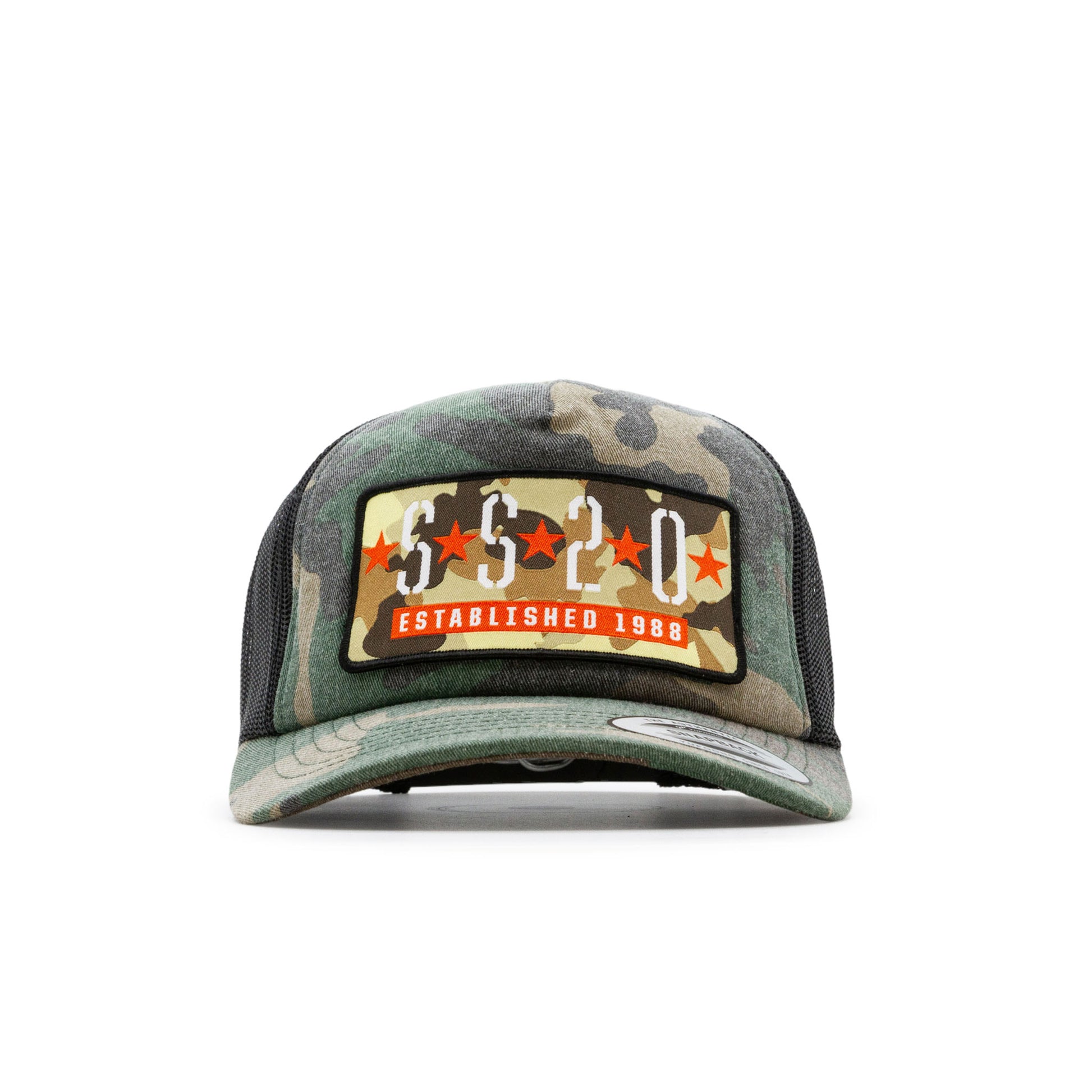 SS20 - Five Star Snapback Trucker Cap Wood Camo/Black