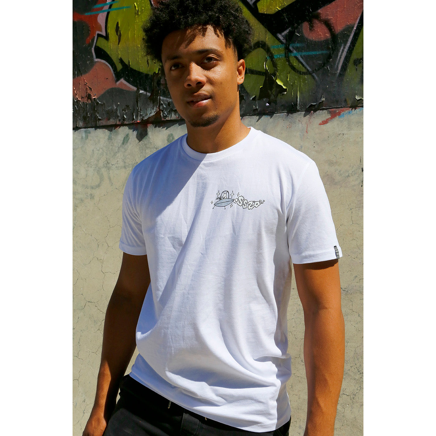 - Small Spaceman Logo Screen Print to Front Left Breast